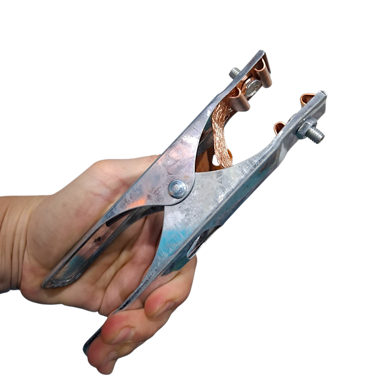 Сжатие «челюстей» обеспечивается пружиной, вставленной с другой стороны штифта. Зажим изготовлен из стали с никелированным покрытием.