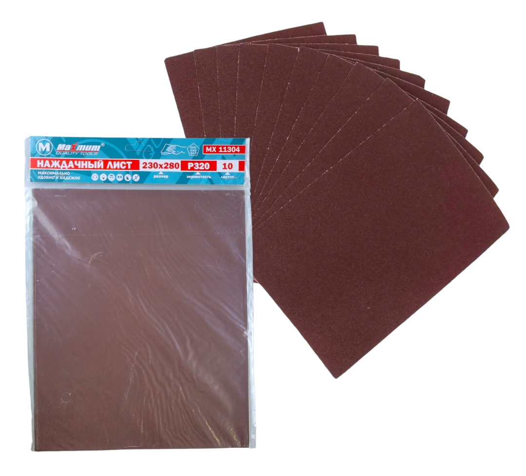 Наждачная бумага P320, 230x280 мм, 10 листов, бумажная основа, "MAXIMUM" MX 11304